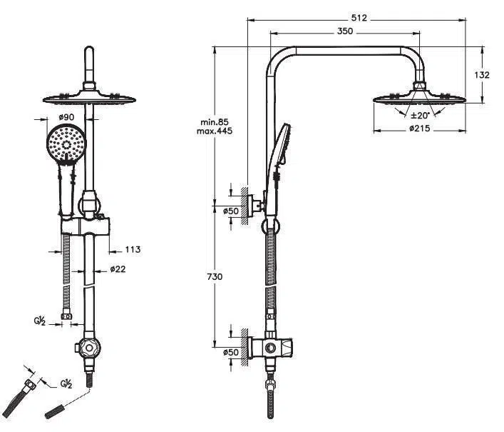 El duşu çıkışı G 1/2”tir