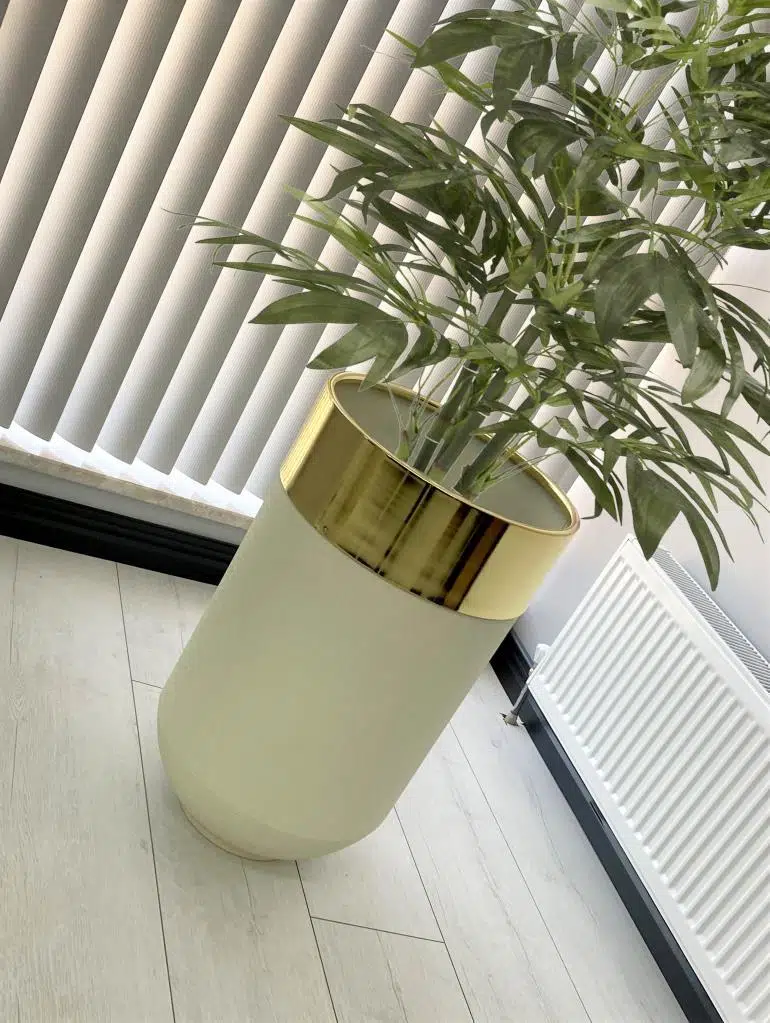 Dekoratif Gold Darbuka Beyaz Saksı 70 cm