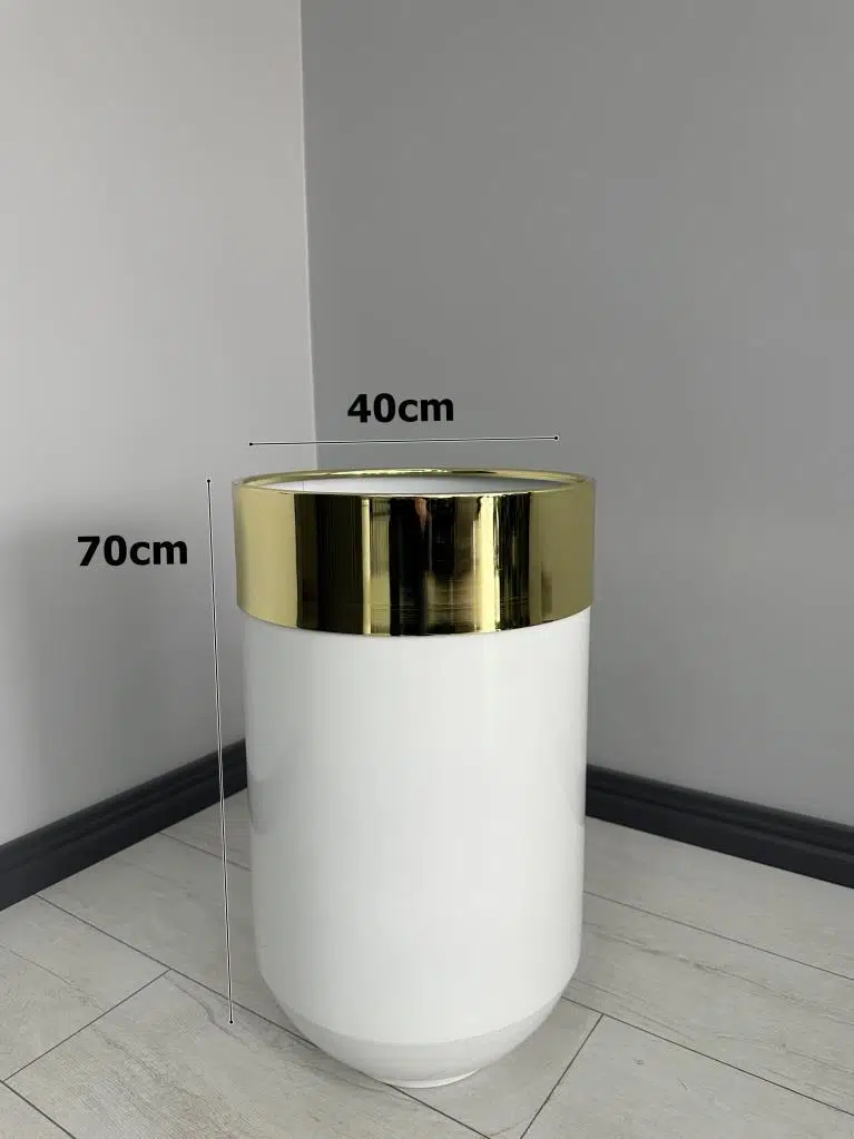 Dekoratif Gold Darbuka Parlak Beyaz Saksı 70 cm