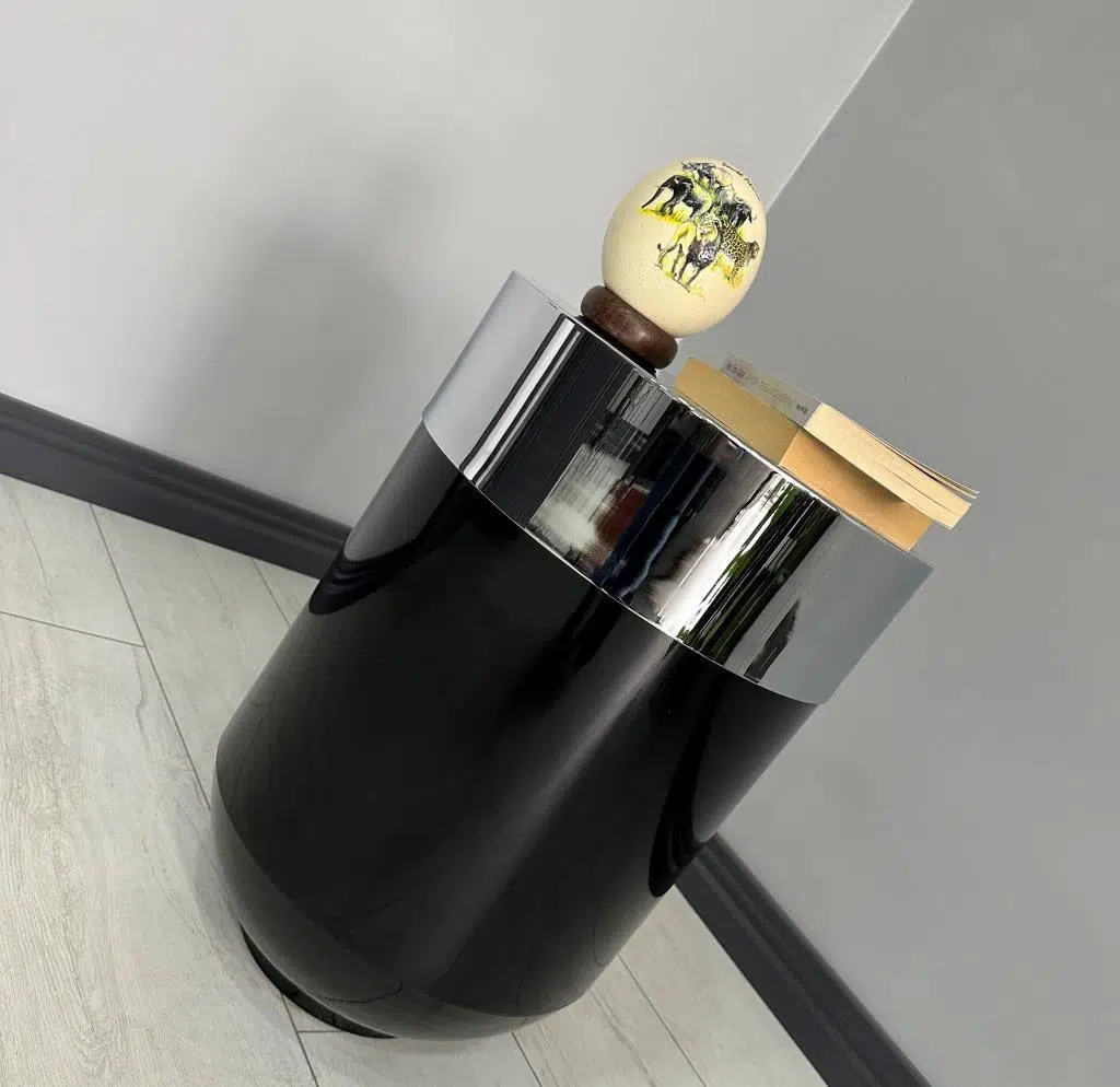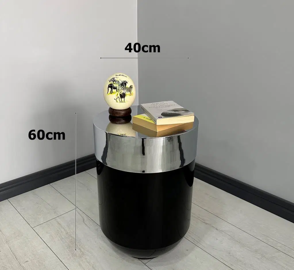 Dekoratif Krom Darbuka Parlak Siyah Sehpa 60 cm