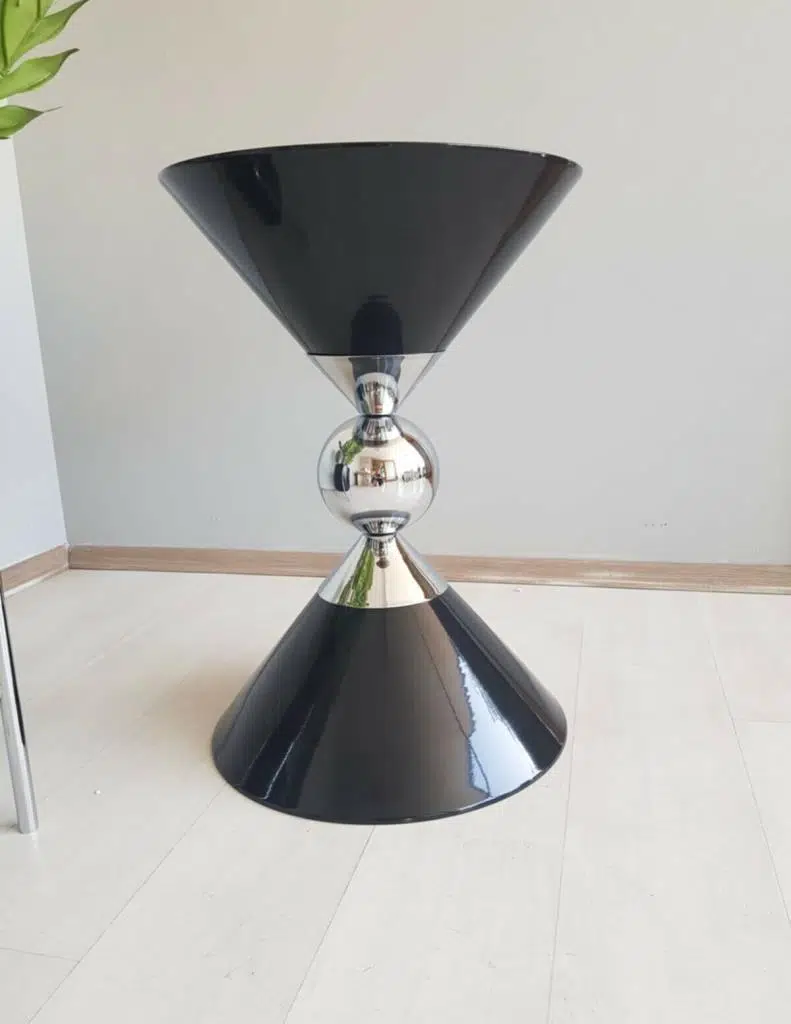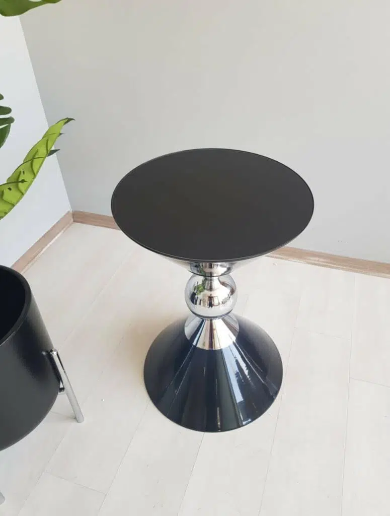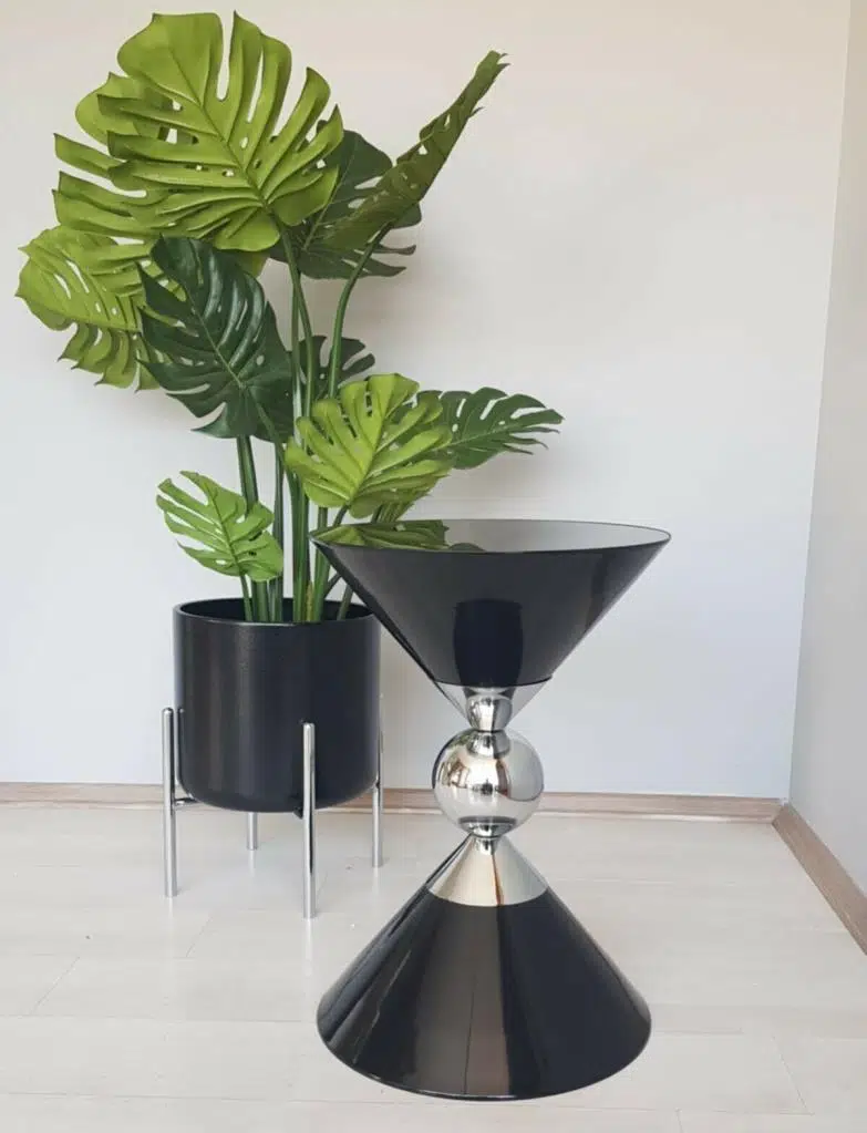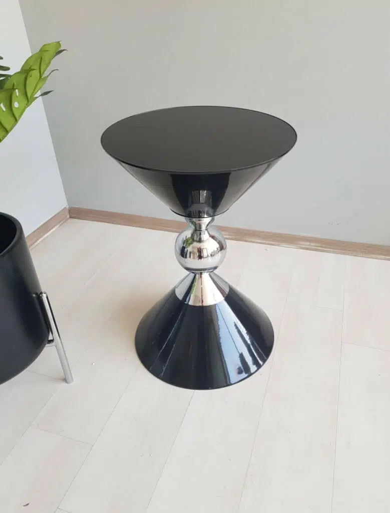 Piramit Dekoratif Siyah Parlak Model Krom Sehpa