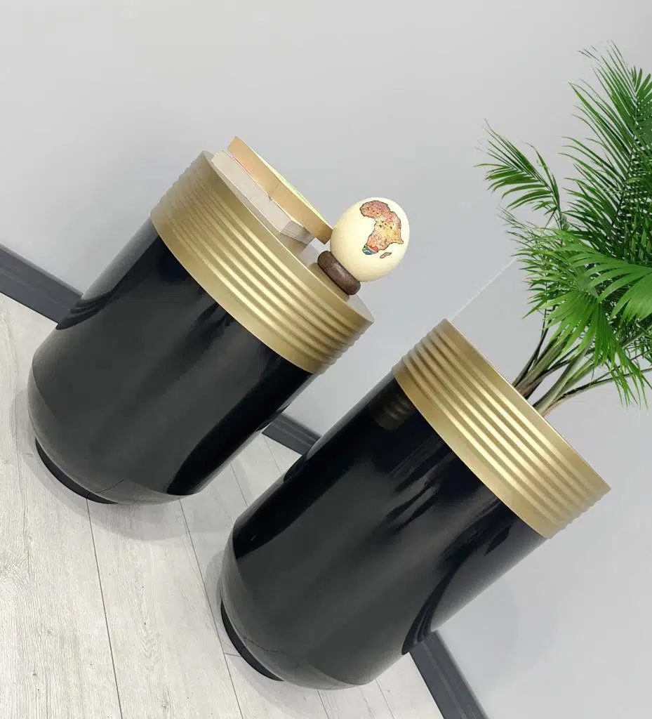 YeniCizgi Dekoratif Eskitme Darbuka Parlak Siyah Saksı 70cm + Sehpa 60cm İkili Set