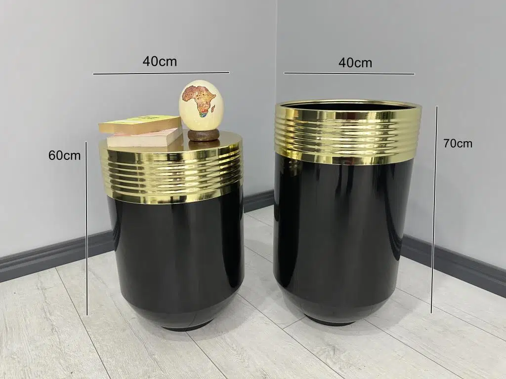 YeniCizgi Dekoratif Gold Darbuka Parlak Siyah Saksı 70cm + Sehpa 60cm İkili Set