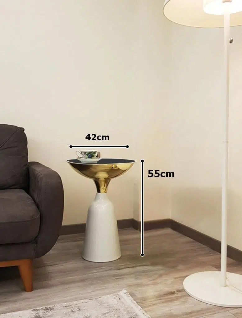 Olympos Dekoratif Parlak Beyaz Model Gold Büyük Sehpa 55 cm