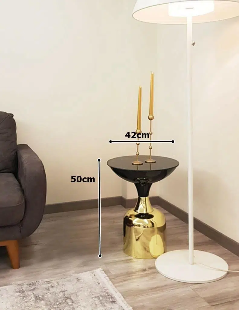 Olympos Dekoratif Parlak Siyah Model Gold Küçük Sehpa 50 cm