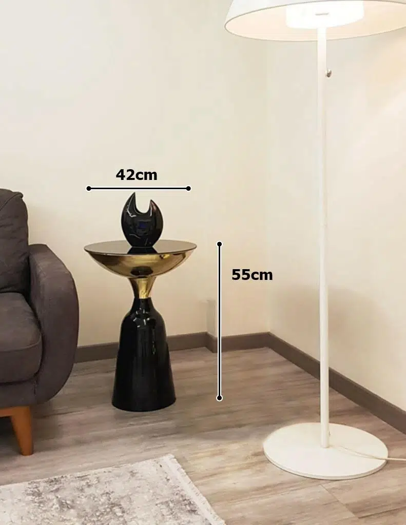 Olympos Dekoratif Parlak Siyah Model Gold Büyük Sehpa 55 cm