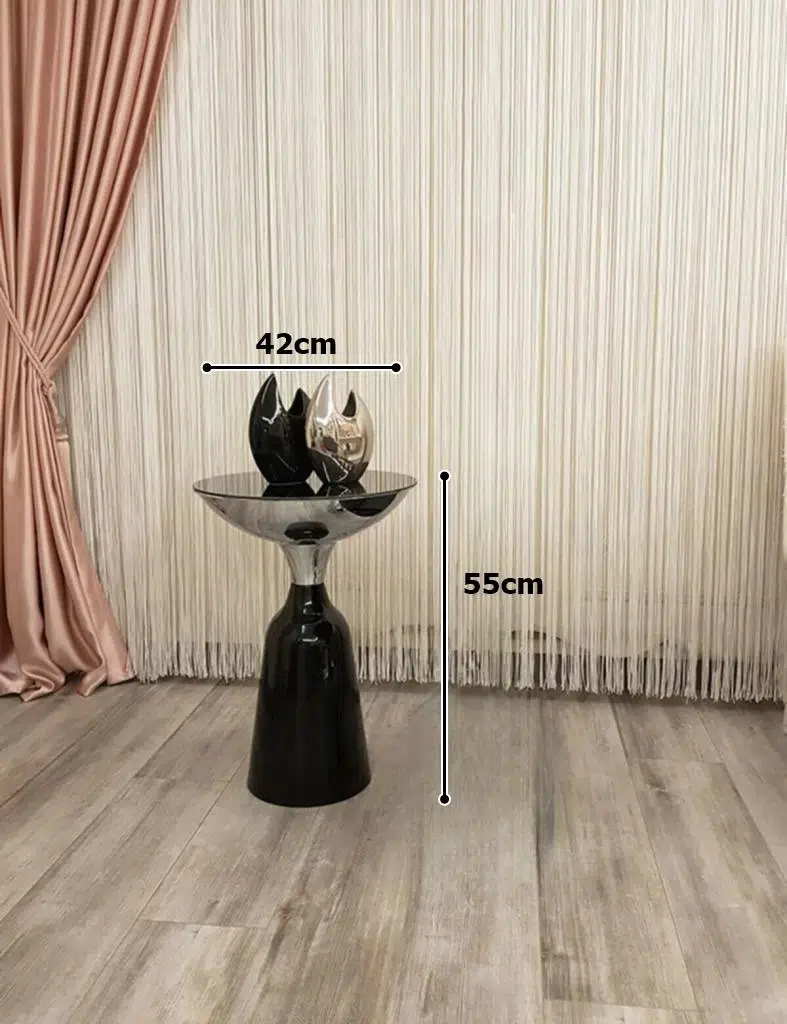 Olympos Dekoratif Parlak Siyah Model Krom Büyük Sehpa 55 cm