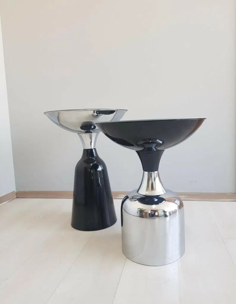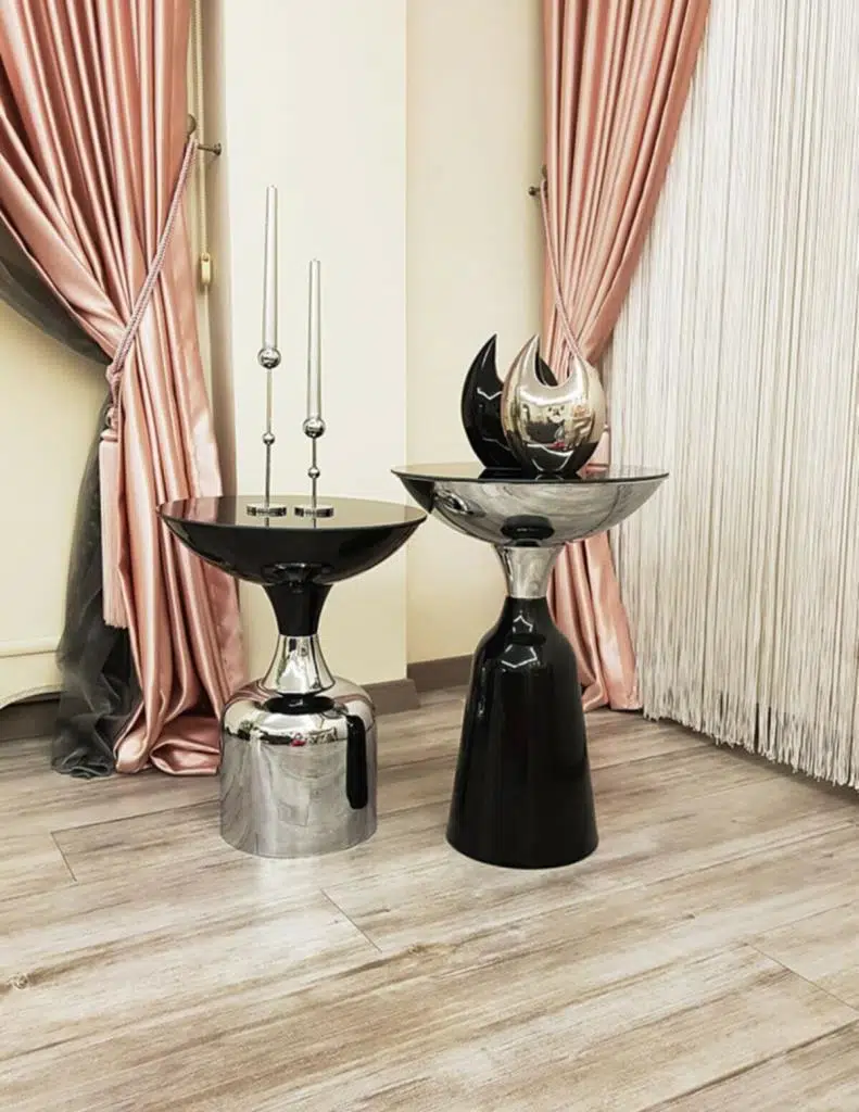 Dekoratif Parlak Siyah Model Krom Sehpa 50 ve 55 cm