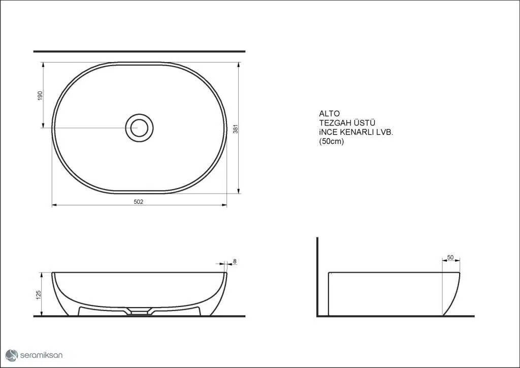 Seramiksan Alto Beyaz Tezgah Üstü Lavabo