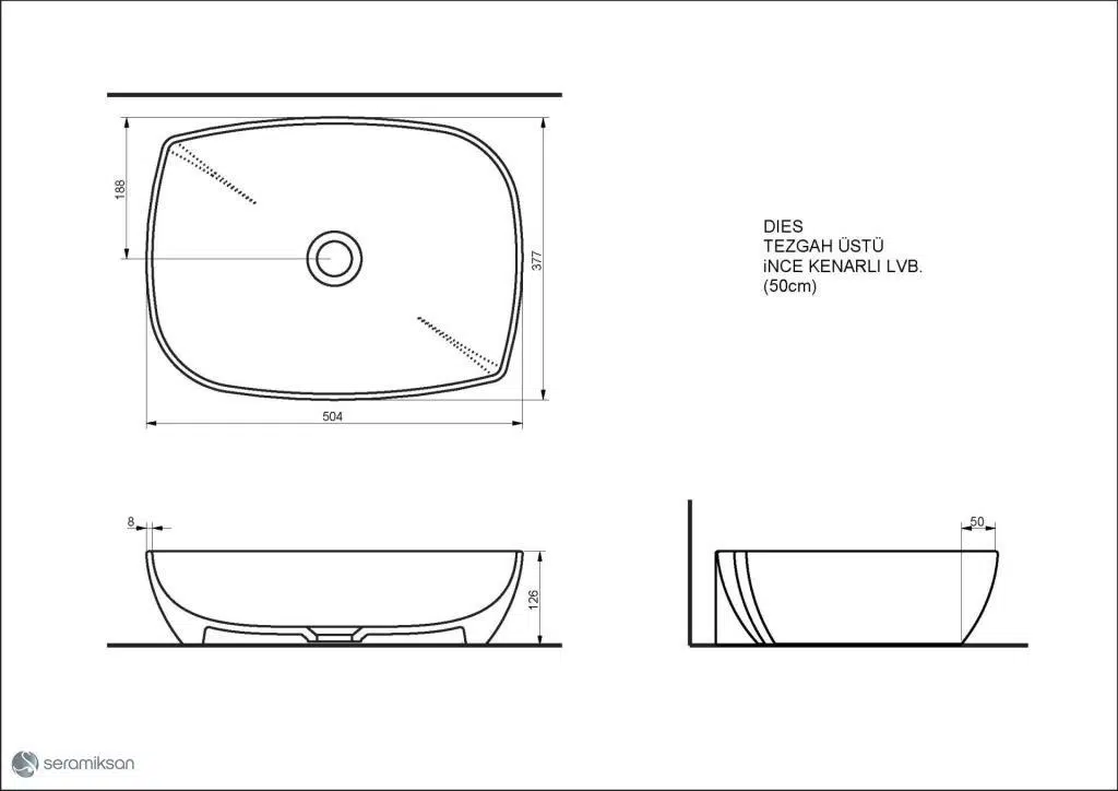 Seramiksan Dies Mat Antrasit Tezgah Üstü Lavabo