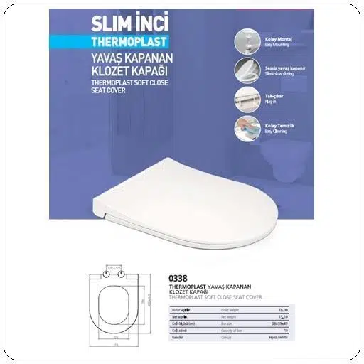 - Slim İnci Thermoplast Yavaş kapanır kapak