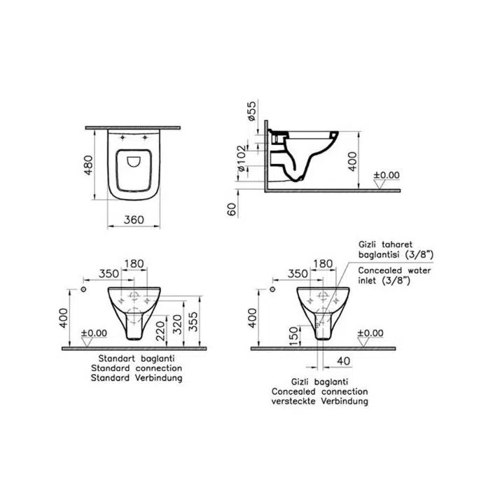 | Etiketler | VitrA S20 Square Asma Klozet 48cm + S20 Klozet Kapağı + VitrA Gömme Rezervuar Set |