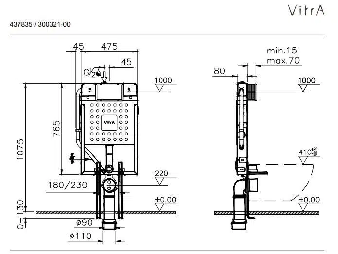 -VitrA 750-1851 Asma Klozetler için Ayarlanabilir İnce Metal Ayaklı Gömme Rezervuar